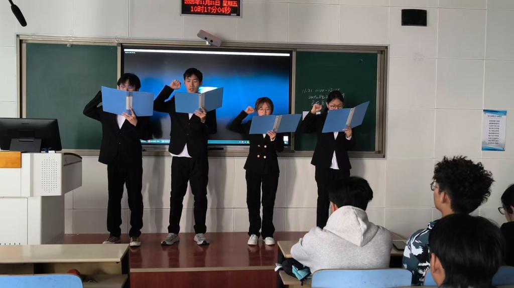活动尾声,王松涛等四位同学献上了诗朗诵《青春护‘财’,共筑经济安全防线》。他们声情并茂,气势磅礴,令在场的同学们深刻铭记经济安全的重要性。