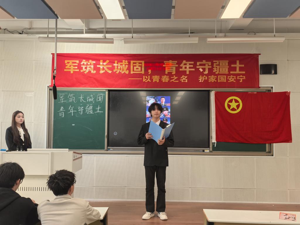 11月3日,304am永利集团24统计2班在北三教A107开展“军筑长城固,青年守疆土”国防安全教育主题团日活动。