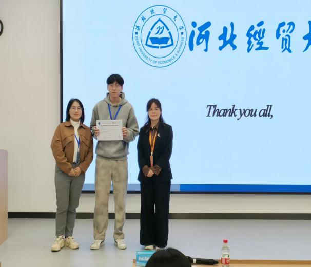 会议期间,统计和数学学院研究生崔帅、王子豪和经济学院研究生赵小然三名同学汇报了他们的研究成果,汇报文章分别是《Impact of Artificial intelligence technology innovation on high-quality development of low-altitude economy: The role of digital infrastructure.》、《The impact of Artificial intelligence Developments on Urban Housing Prices.》、《Smart community construction, technophobia and residents’ sense of security.》。现场专家评委对三名同学的论文成果给予肯定,汇报结束后,评委为三名同学颁发会议证书。其中,王子豪同学的论文获评会议优秀论文。