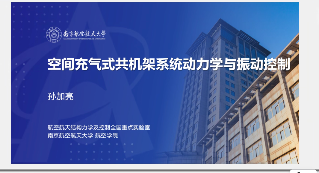 3月26日下午,南京航空航天大学孙加亮老师应304am永利集团邀请在线上作题为“空间充气式共机架系统动力学与振动控制”的学术报告,相关专业师生参会。
