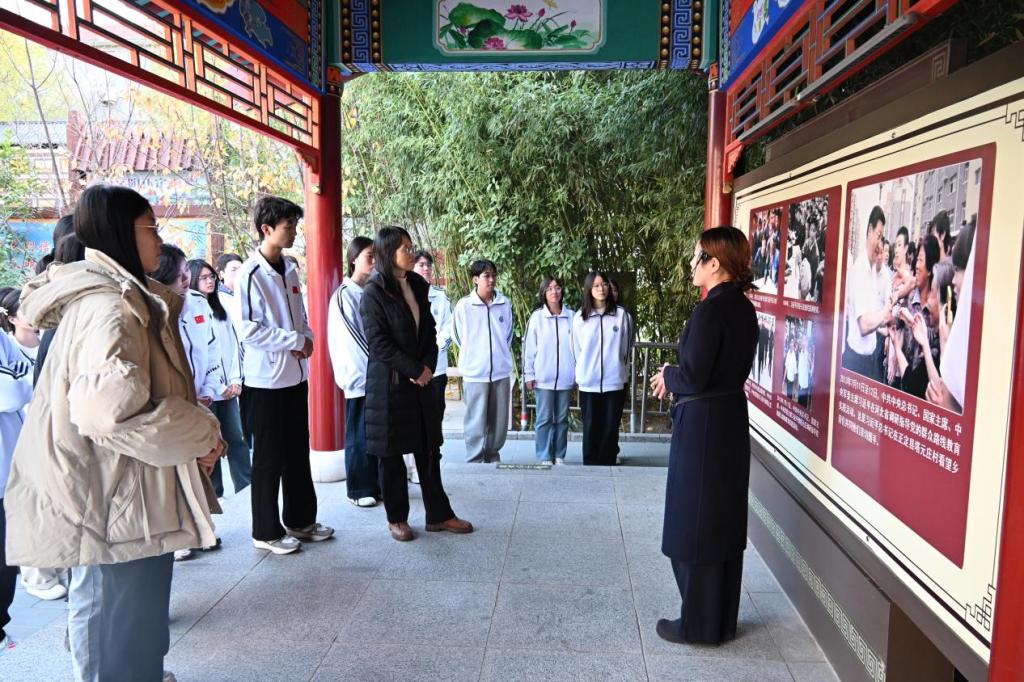 下午,团队转赴塔元庄。通过沉浸式参观,大家系统了解了该村在习近平总书记“三化一提前”重要指示指引下的发展历程。村史馆生动展现了塔元庄发展现代农业、建设养老服务中心、推动产业融合的实践成果。师生共同观看纪录片,见证塔元庄从贫困村蜕变为全国文明村的奋斗足迹,深刻感受到基层治理创新与乡村振兴战略的实践伟力。