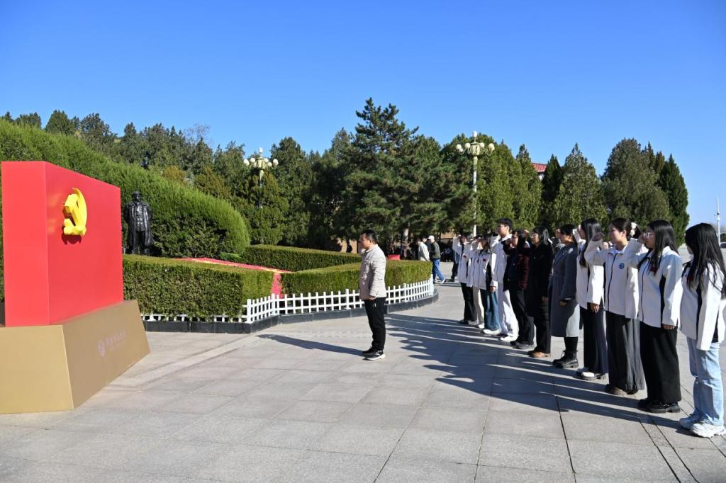 在西柏坡纪念馆广场,系支部书记常之魁作为“双带头人”,带领全体党员庄严宣誓。铿锵誓言回荡在革命圣地,彰显出党员师生对党的无限忠诚、为事业奋斗终身的坚定决心。宣誓后,师生重走“赶考路”,实地感悟中国共产党人“进京赶考”的清醒与坚定,同时许下要以挺膺担当之姿勇挑时代重担的青春誓言。