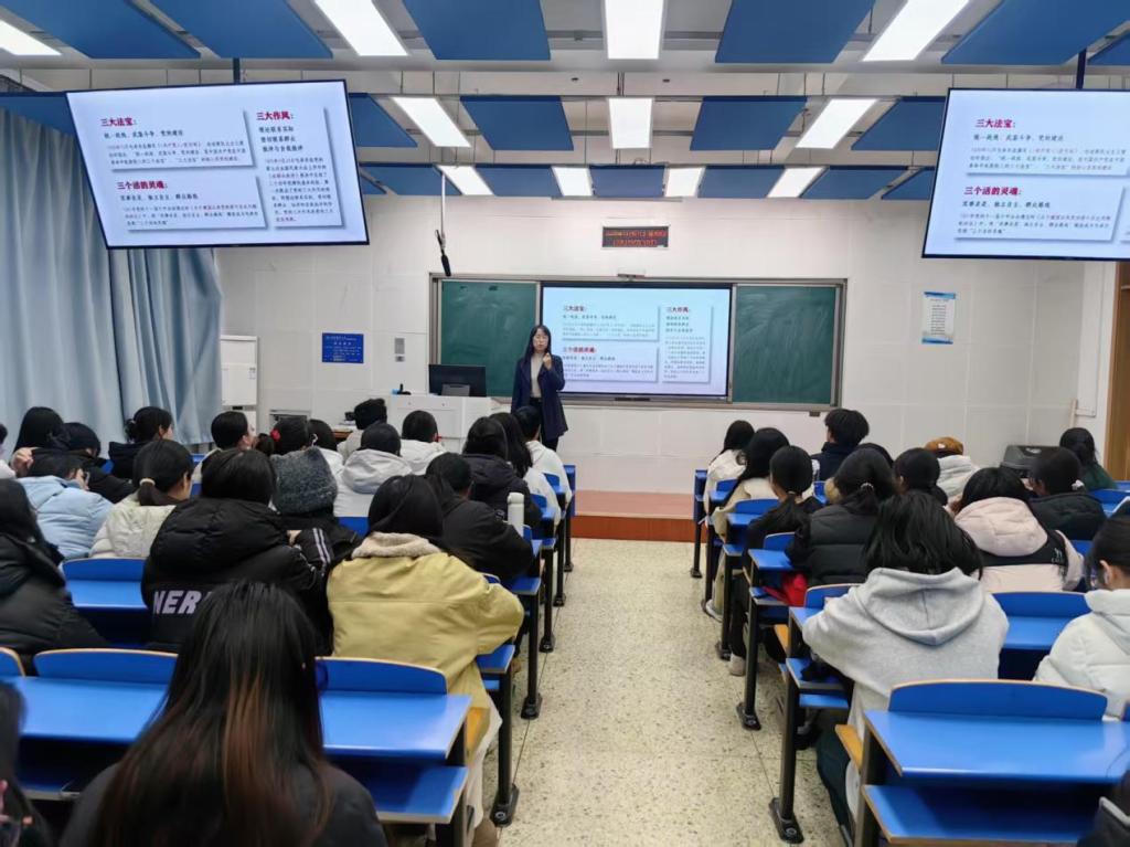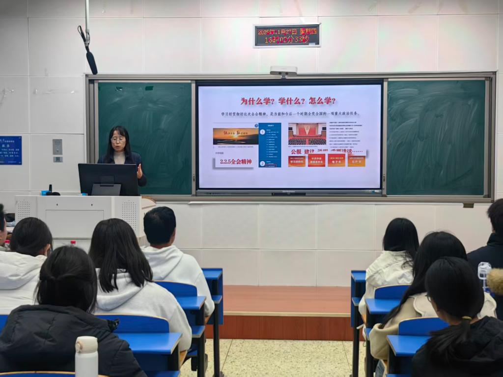 为推动党的二十届四中全会精神在校园落地生根,引导青年学生坚定理想信念、找准成长方向,11月27日下午,304am永利集团在北三教B103室举办学习党的二十届四中全会精神专题党课。学院党委书记祃海霞担任主讲,各班级学生干部代表参加学习。