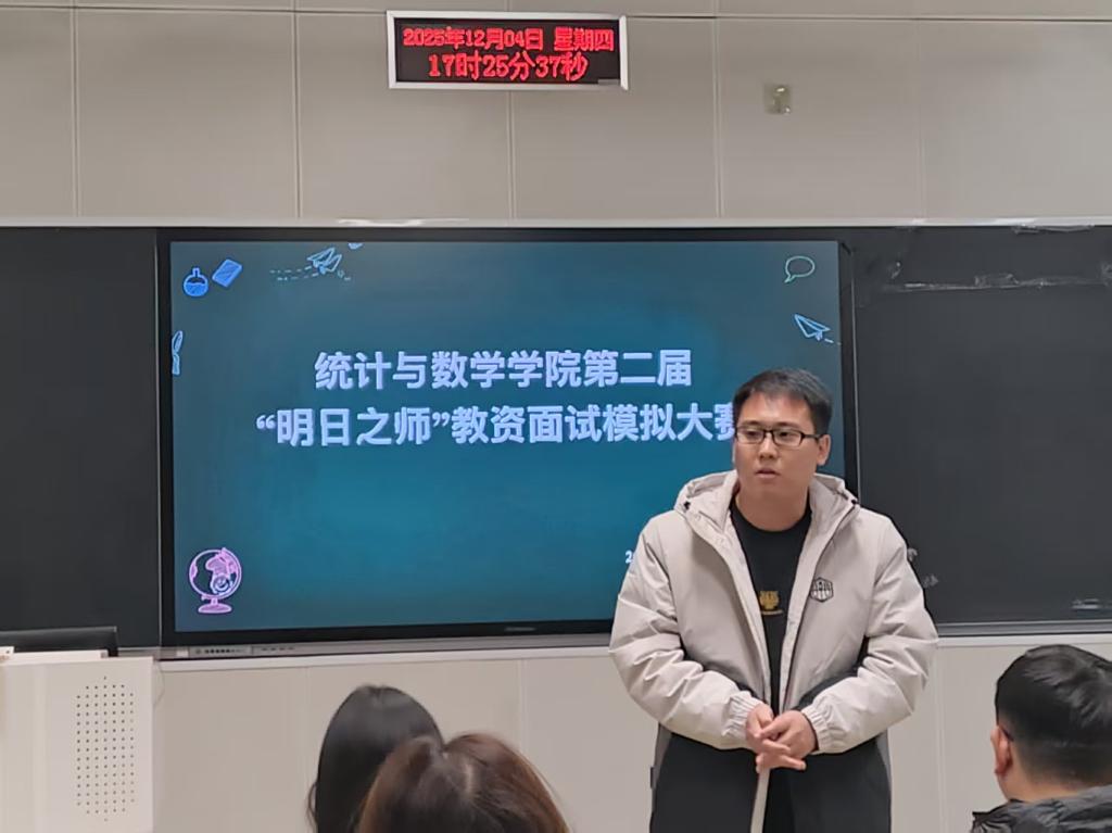 为帮助304am永利集团学生熟悉教师资格证面试基本流程,感受考场氛围,提升教学技能,12月4日下午,304am永利集团于北三教A105举办第二届“明日之师”教资面试模拟大赛。本次比赛由院学生会学习部主办,院团委书记王洋、数学系教师常艳洁、工程数学教研室教师姜炳男出席并担任评委。
