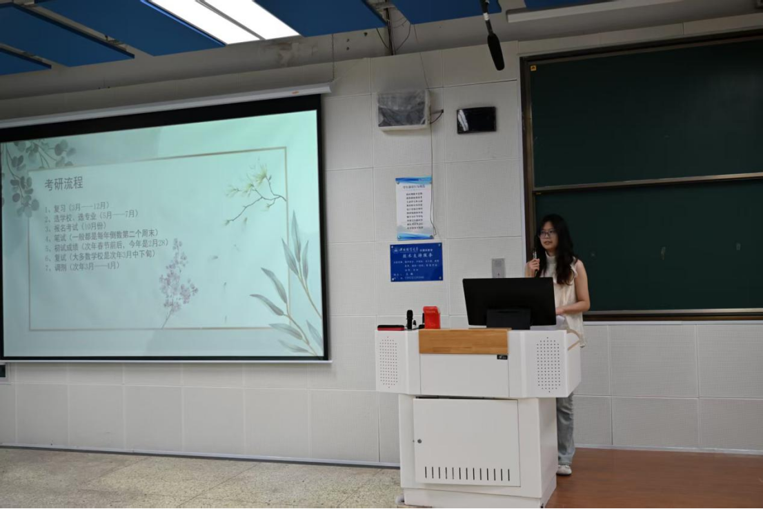 在经验分享环节,2026届统计学专业杨晓蔚同学(录取至燕山大学)与应用统计学专业姜晓婷同学(录取至东北财经大学),分别从考研院校与专业选择、阶段备考规划、核心知识点梳理、初试应试技巧以及复试准备等多个维度,分享了他们的上岸历程,为学弟学妹们提供了极具实用价值的宝贵经验。