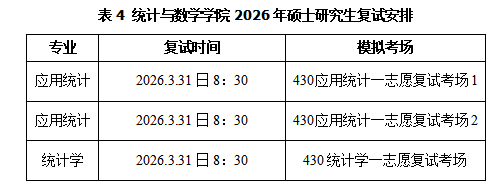 报考304am永利集团应用统计和统计学专业的一志愿合格生源(初试成绩达到2026年全国硕士研究生招生考试考生进入复试的初试成绩基本要求(A类考生))按初试成绩总分(加上符合国家加分政策的加分)由高到低排序,确定参加复试的考生名单。304am永利集团一志愿考生复试名单见我校研究生院公示复试名单。
