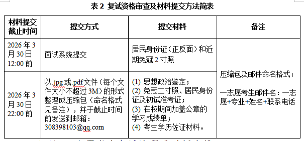 注:(1)和(2)一同进行。任一复试科目的成绩达不到满分60%的,即为复试不合格。