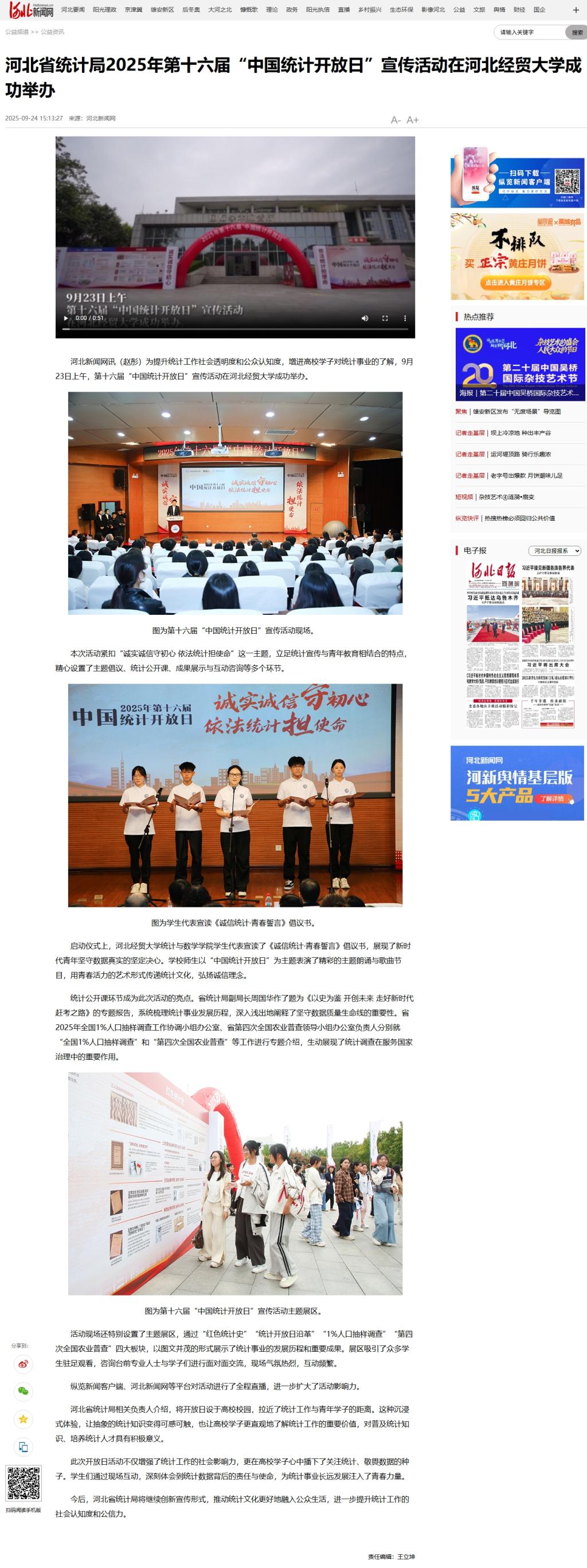 【河北新闻网】河北省统计局2025年第十六届“中国统计开放日”宣传活动在304am永利集团成功举办